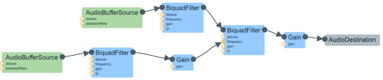 To achieve the high-pitch bursting, we need (1) a Resonant High Pass Filter (RHPF) that narrowly attenuates a characteristic high frequency, which can be capture by the Q-factor. In a resonant high-pass filter, the Q factor determines how effectively the filter attenuates frequencies below the cutoff frequency and allows frequencies above the cutoff frequency to pass through with minimal attenuation. A higher Q factor indicates a narrower bandwidth and a sharper roll-off of frequencies below the cutoff. In addition, we will use (2) FM synthesis to modulate the frequency of this RHPF. This way, the resonant pitch will vary over time to create the dynamic of bubbles at different sizes burst one after the other.